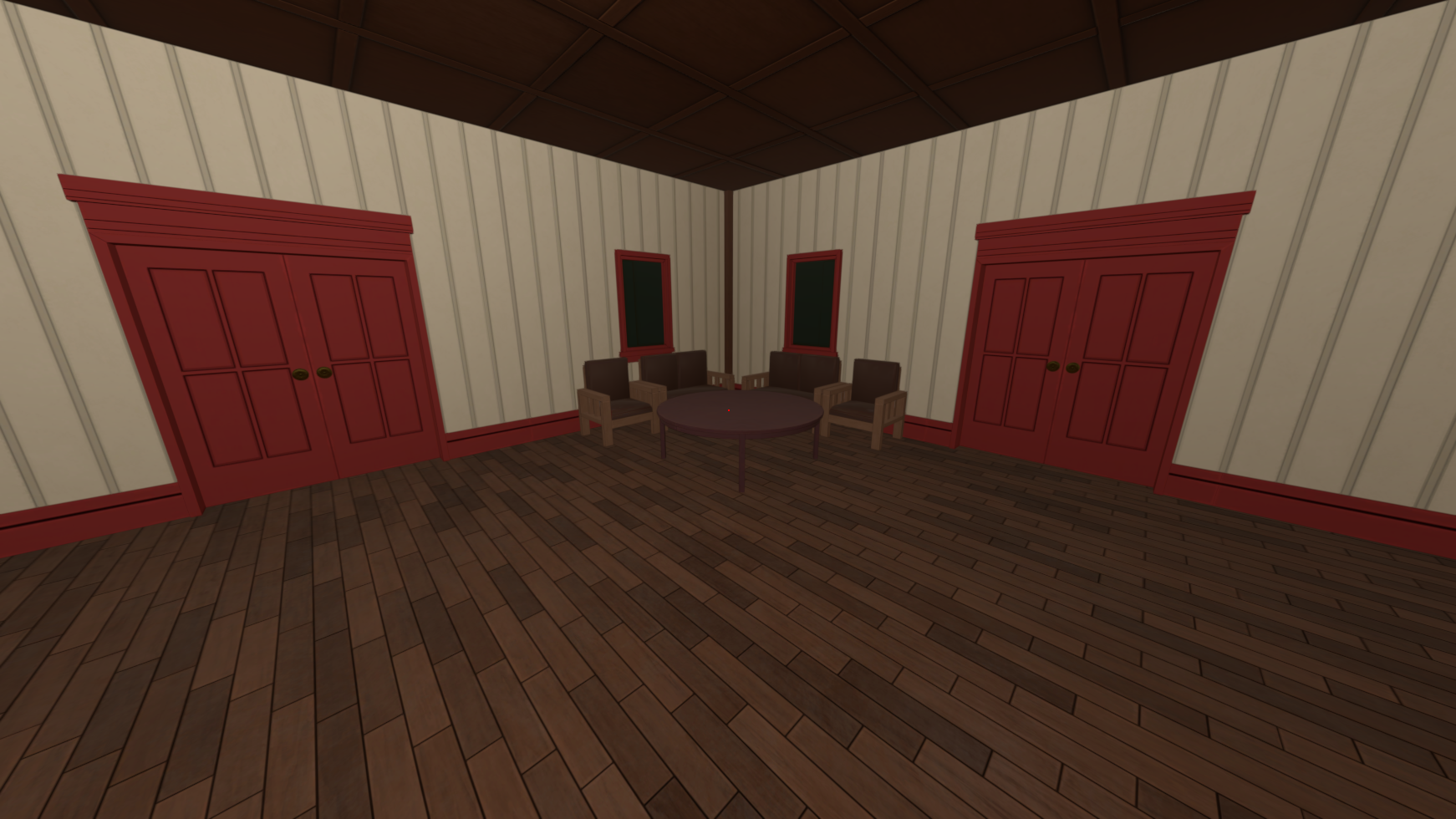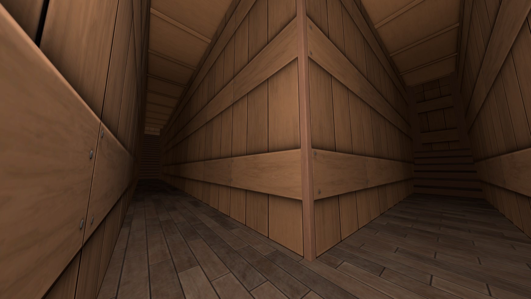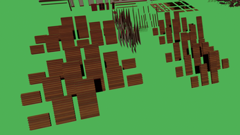 Interiors built with wallpaper and wood, 266 tileable pieces that fit on a grid of 0.5m,