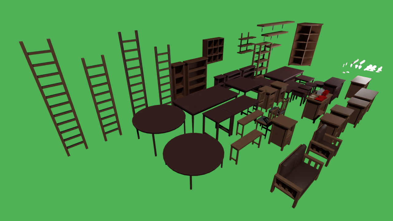 81 generic piece of furniture and lighting piece and 2 demo levels you can play with.